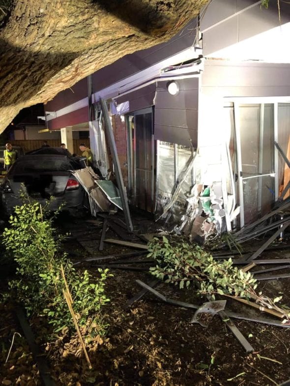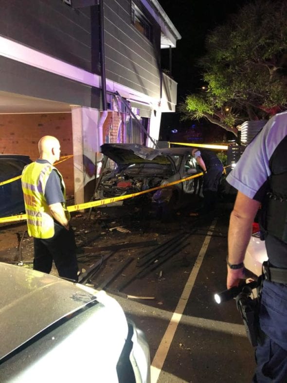 At around 11.30pm, emergency services responded to reports a vehicle had slammed into the ground level of a unit complex on Lake Road, causing serious structural damage.