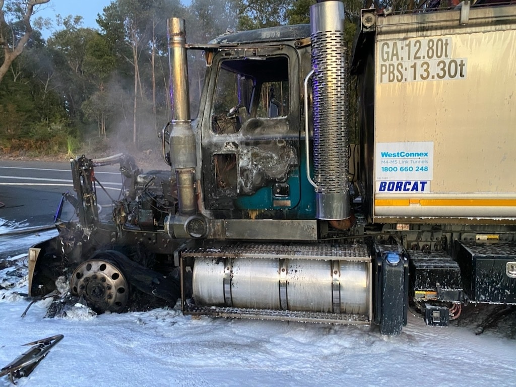 TRUCK DESTROYED BY FIRE AT PEATS RIDGE