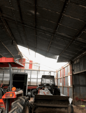 ROOFS TORN OFF AND TRACTOR TOPPLED IN STORM