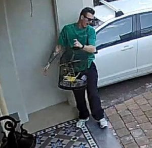 They’re looking to speak with the man in these CCTV images, who allegedly stole a bird in a cage on the 15th of February.
