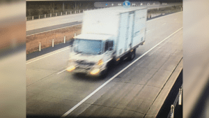 Officers from Strike Force Kiowa are hoping to speak with the occupants of an Isuzu Pantech truck, seen here on a traffic camera travelling south on the Pacific Highway.