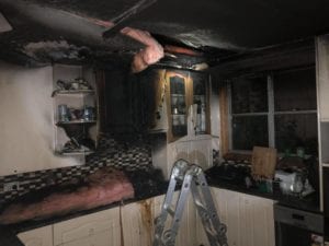 Photos inside the Aberdeen home show the damage in the kitchen and roof cavity.