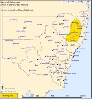 The Bureau of Meteorology has issued a severe thunderstorm warning for the Hunter, Mid North Coast and North West.