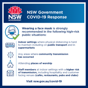 NSW Premier Gladys Berejiklian urged the state to wear masks in situations where community transmission is more likely.