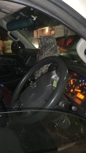At 10.30pm, a delivery driver was traveling west on John Street in the van, when a low flying owl flew through his open window, hitting him in the head.